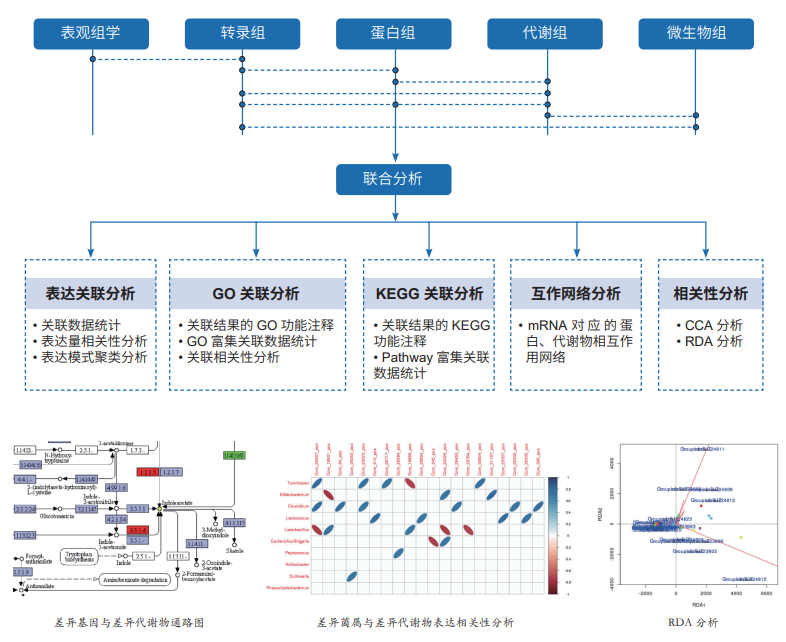 多组学是通过对各组学进行高通量测序或质谱检测并对数据整合研究,探究生物体系中多种物质之间相互作用的方