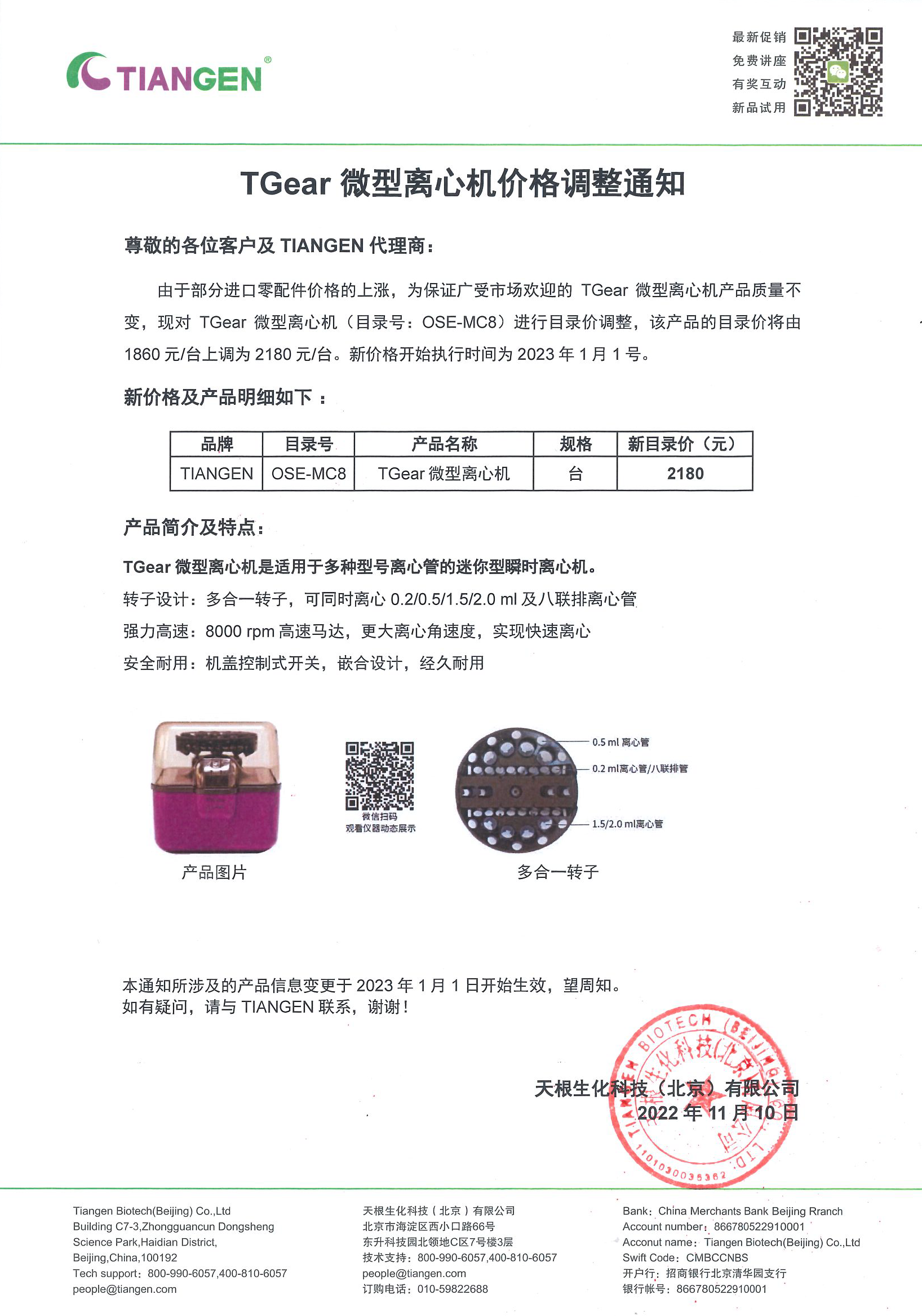 TGear 微型离心机价格调整通知