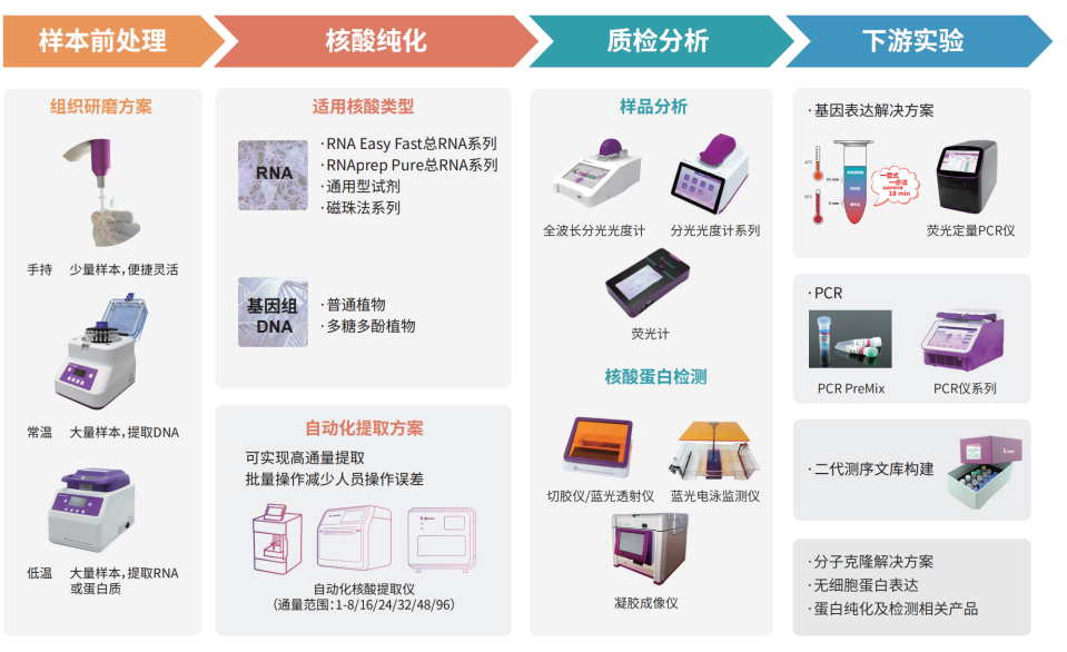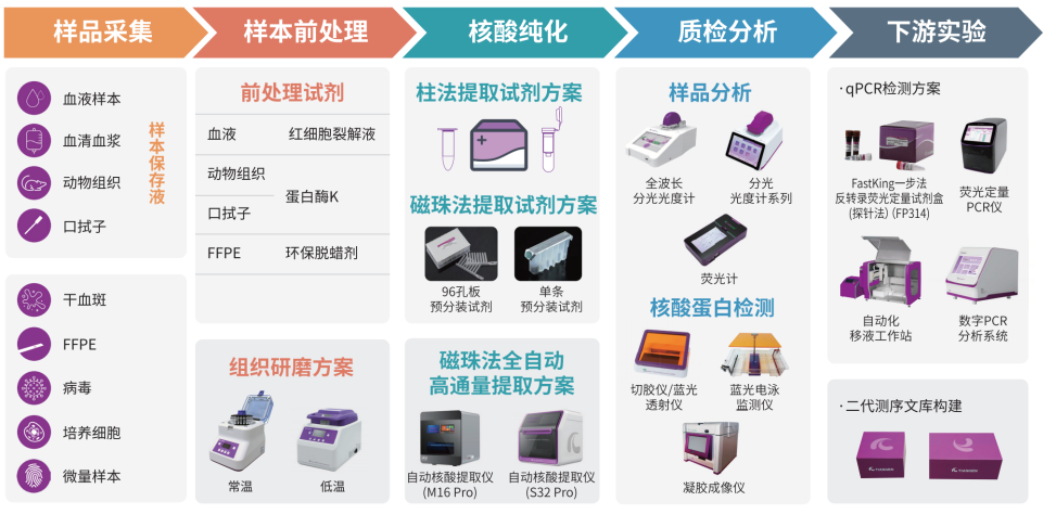 TIANGEN专注核酸提取和检测近20年,为广大科研工作者提供从样本处理、核酸纯化到下游检测的整体解决方案,帮助大家加速实验进程,避免反复摸索方案而付出的时间和材料成本。