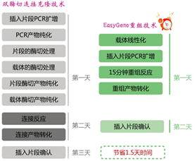 1. 无需考虑酶切位点限制,通过序列同源性15 min实现载体与片段的快速重组。