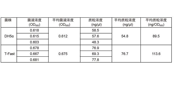 ■ 高质粒得率:相同 OD600 条件下,T-Fast 感受态细胞质粒得率高于 DH5α 20%。