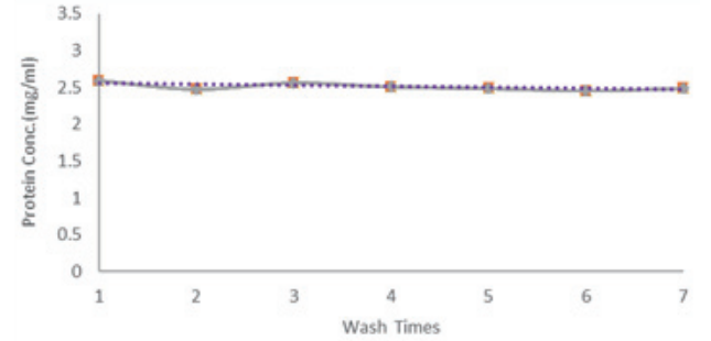磁珠重复洗涤七次,蛋白特异性抓取效果依旧良好,目标蛋白浓度基本一致。